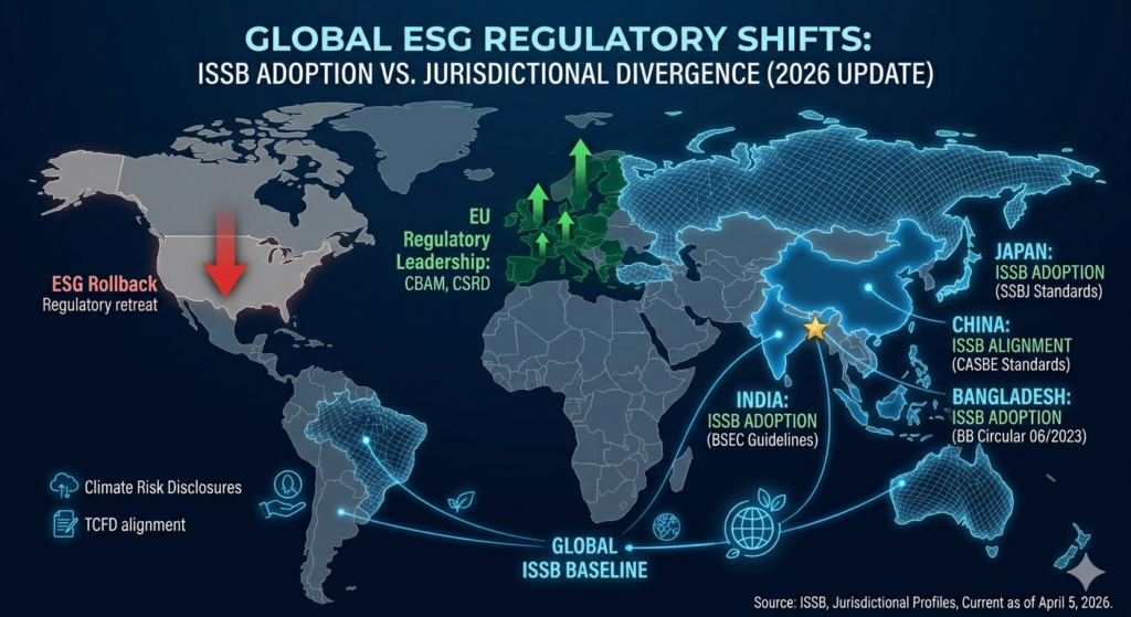 When USA sneezes, the world catches a cold. But when America retreats from ESG, Bangladesh cannot afford to follow. Our buyers are in Europe. Our investors are in Asia and the Gulf. Our climate risk is real. And the ISSB is still marching forward — quietly, relentlessly, without a press conference