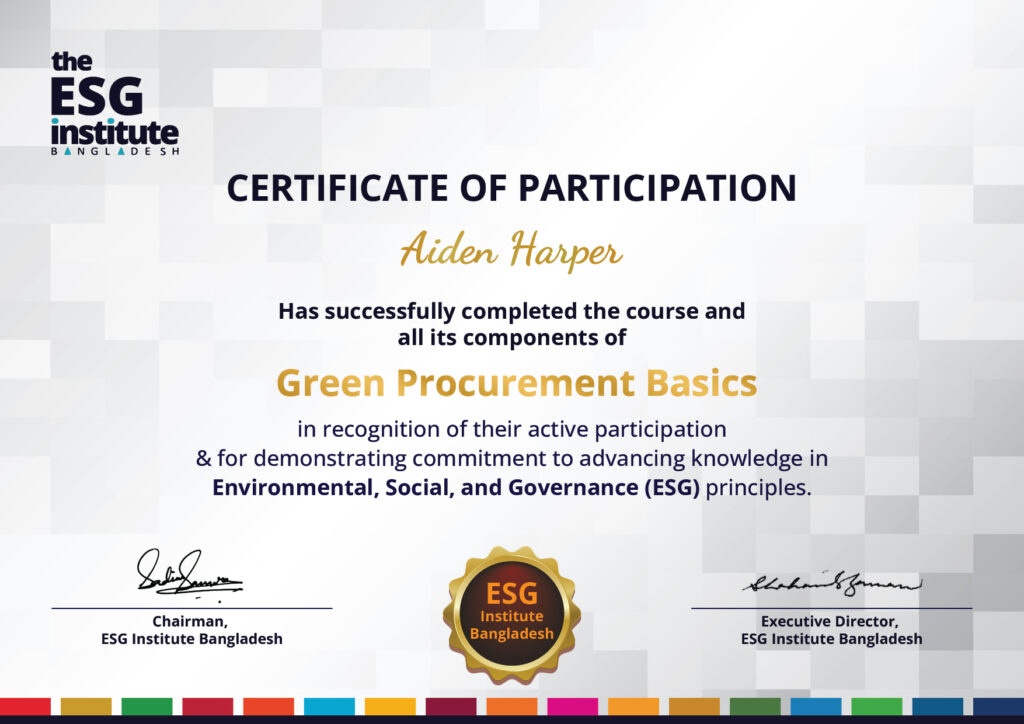 Upon successful completion of the workshop, participants will receive a certificate of completion from the ESG Institute.